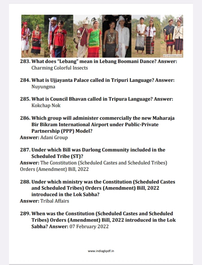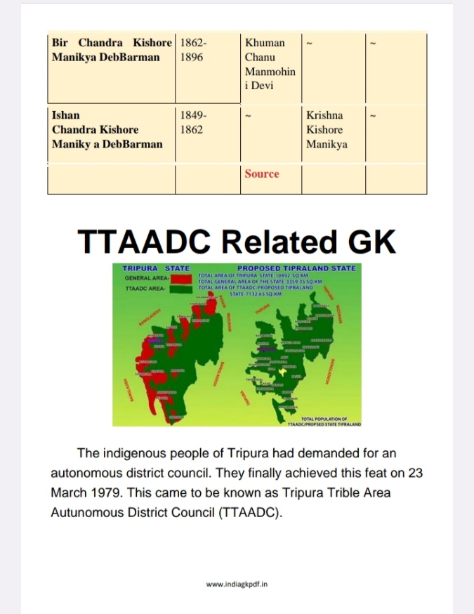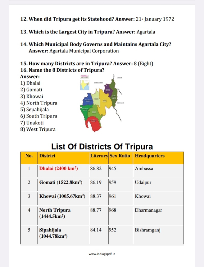 This PDF usually includes important general knowledge about Tripura, including facts about its geography, history, culture, economy, wildlife and notable personalities. It serves as a valuable study assistance for candidates appearing in state-level examinations, such as Tripura Public Service Commission (TPSC) and other local recruitment examinations.
